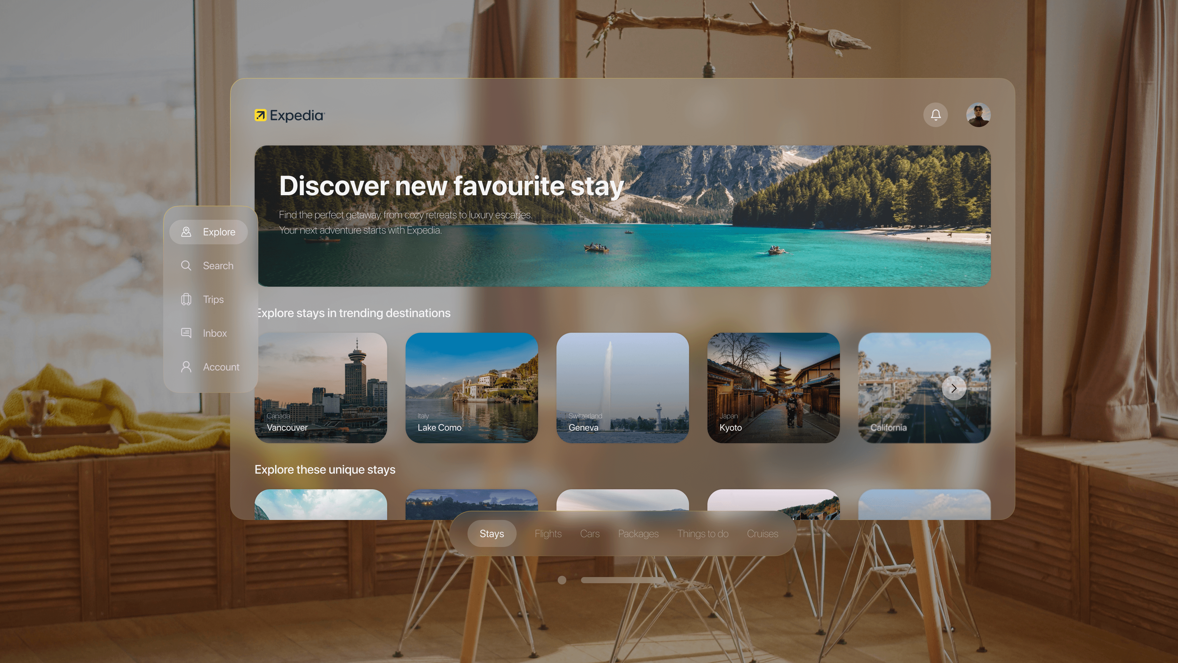 Expedia for Vision Pro: spatial, gesture led, and image first for faster trip decisions.